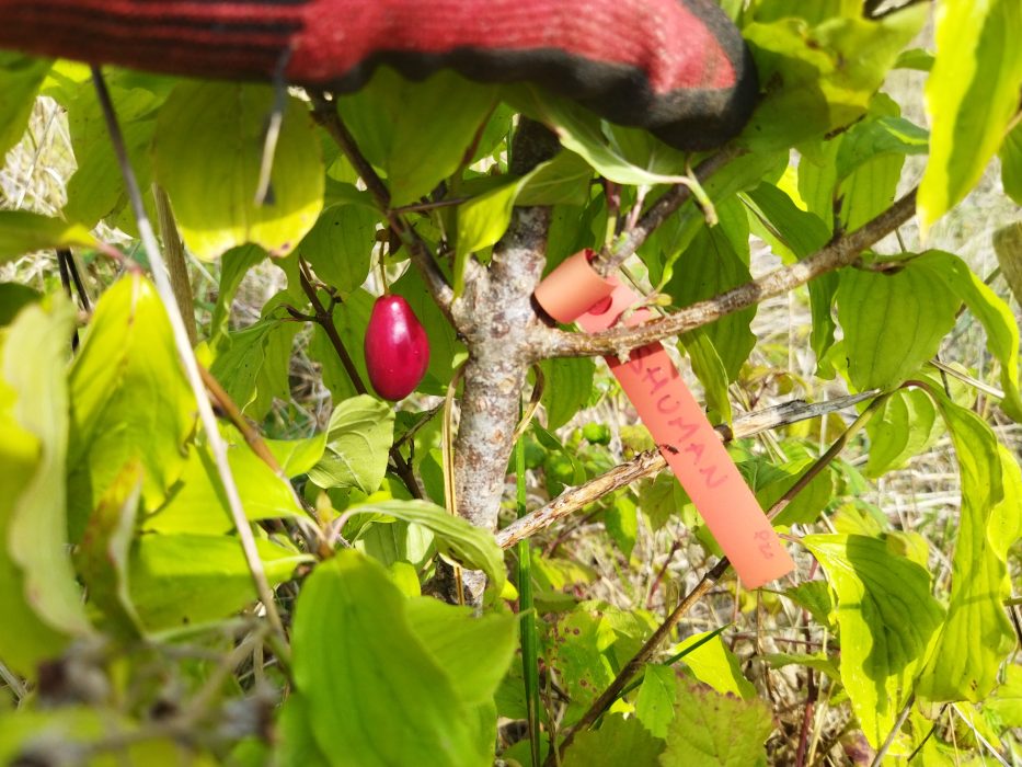 Une espèce sauvage indigène à redécouvrir : fleurs jaunes discrètes mais très précoces, et de très bons petits fruits rouges à noyaux, au goût entre framboise et cerise, mûrs en septembre. Parfait pour des haies sauvages et fruitières. Très rustique au froid, tolère bien le calcaire. Non autofertile.